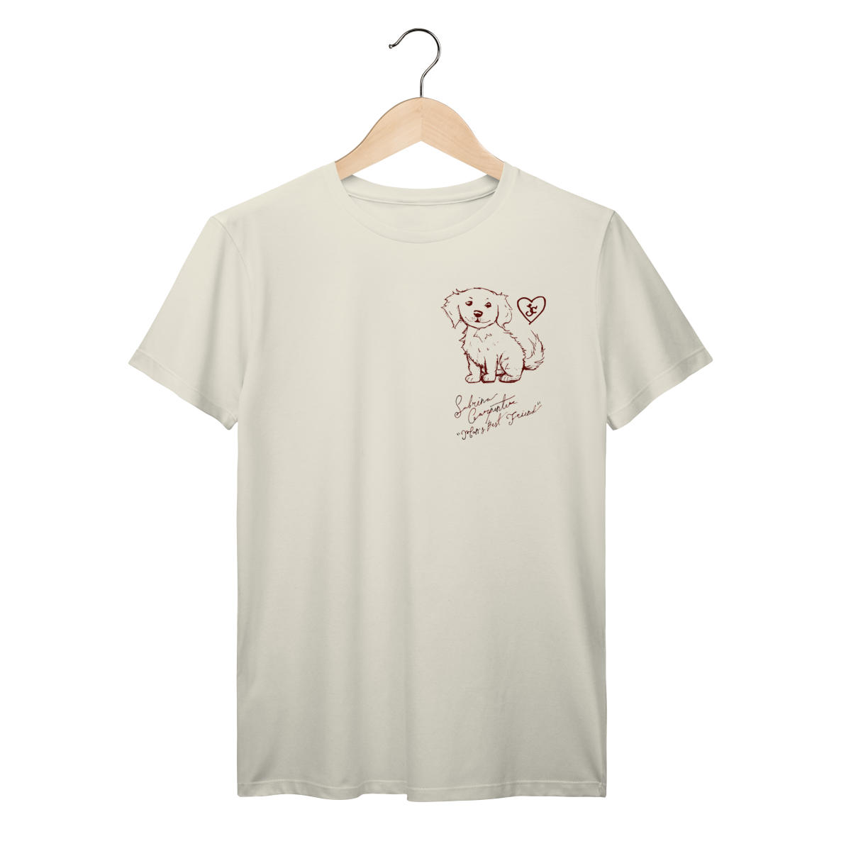 Essa camiseta única foi inspirada no álbum Mans Best Friend da Sabrina Carpenter. Ela tem um estilo como se tivesse sido feito após uns goles de vinho em um bar muito divertido, com um cachorro desenhado como se fosse em caneta com o coração, nome da Sabrina e nome do álbum
