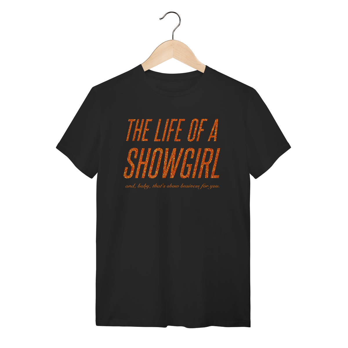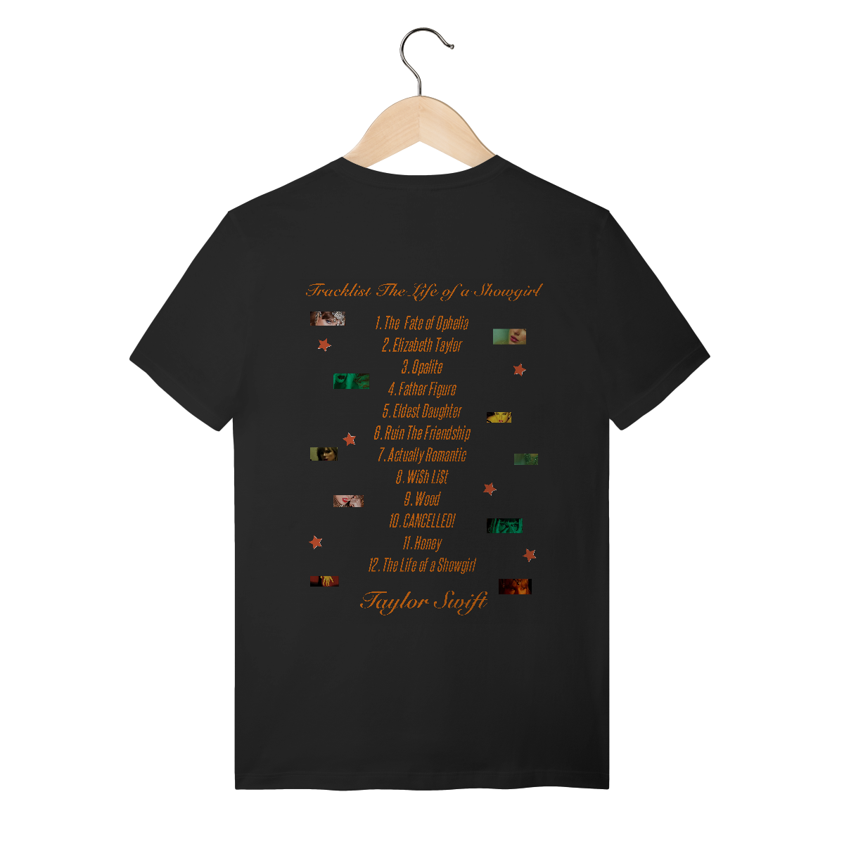 Camiseta inspirada no álbum The Life of a Showgirl da cantora Taylor Swift. O que acontece depois do show? Nos bastidores? O photoshoot do álbum traz esse cenário e arte da camiseta é um reflexo dessa vida de artista, entrando numa das mentes mais brilhantes do mundo pop.